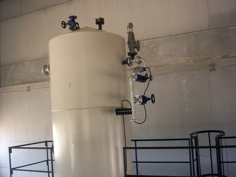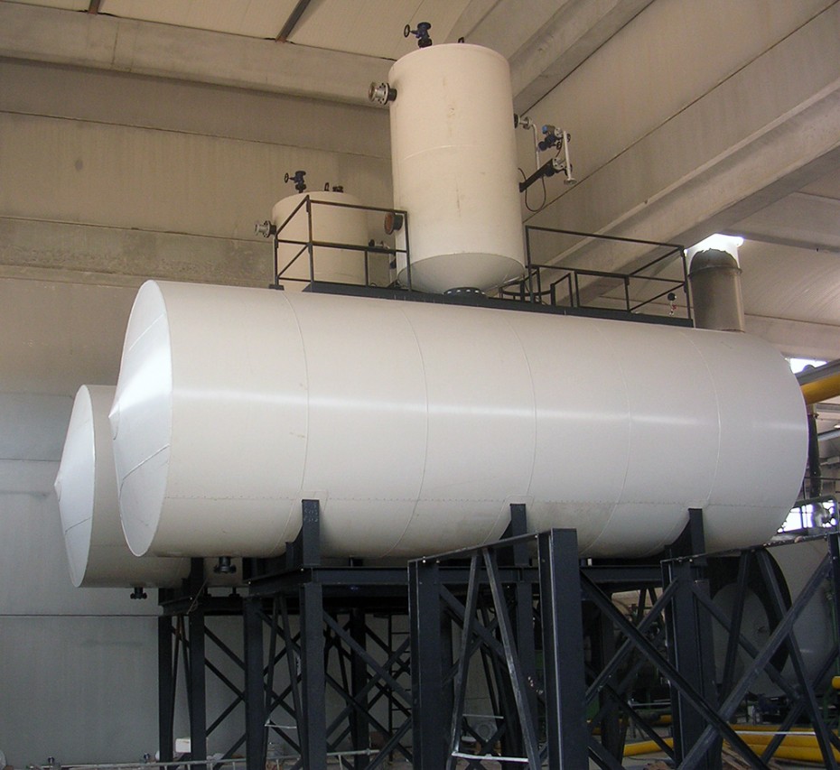 Degasatori atmosferici e termofisici per la deossigenazione ed il preriscaldo dell’acqua di alimento per generatori di vapore, conforme alla direttiva PED 97/23/EC Contenuto massimo 60 m³ pressione massima ammissibile 5 bar. I degasatori possono essere forniti completi di impalcatura di sostegno e scalette di servizio.